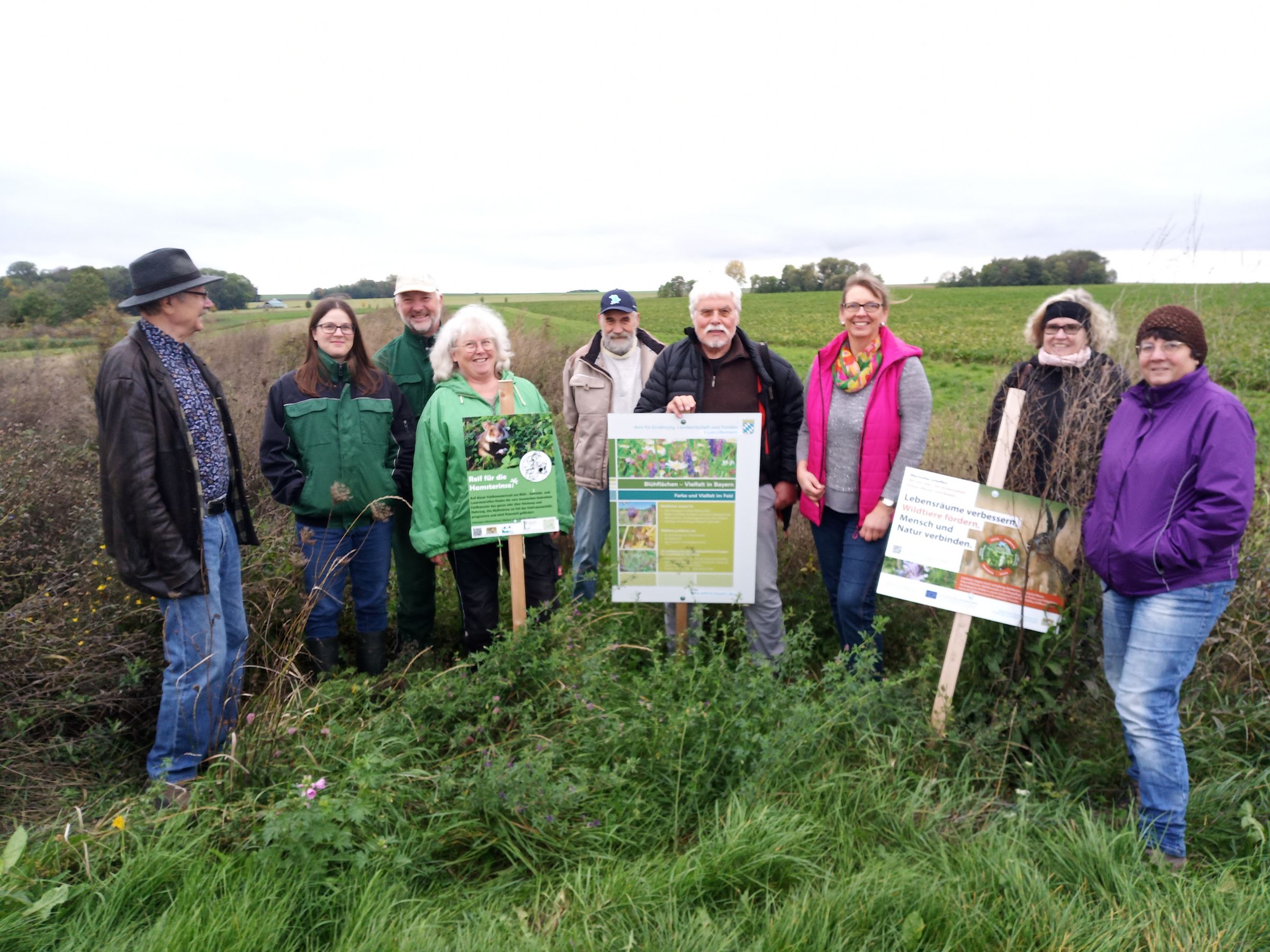 Deshalb gibt es das Feldhamster-Hilfsprogramm, das im ursprünglichen Verbreitungsgebiet des Tieres in Unterfranken (Landkreise Würzburg, Kitzingen, Schweinfurt) und dem westlichen Landkreis Neustadt/Aisch-Bad Windsheim umgesetzt wird. Die Aktiven des BUND Naturschutz im Landkreis Neustadt/Aisch-Bad Windsheim informierten sich vor Ort an einem Feldstück über die Umsetzung des Hilfsprogramm und ließen sich von der Landwirtin Karina Stadelmann aus Geißlingen die Maßnahmen auf ihrem Feld erklären.
